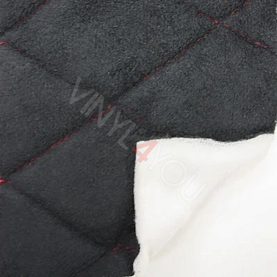 Алькантара стеганая черная Ромб с красной строчкой