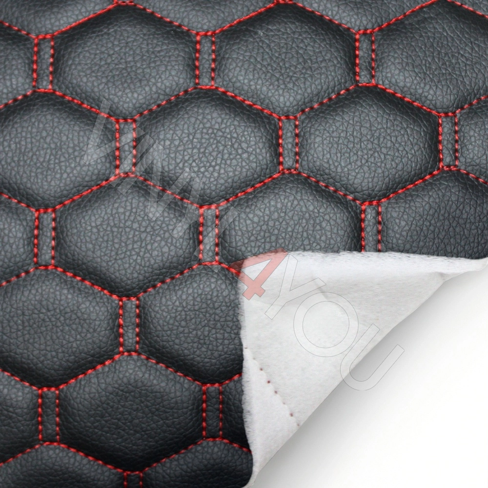 Экокожа стеганая Орегон Соты Черная с красной строчкой